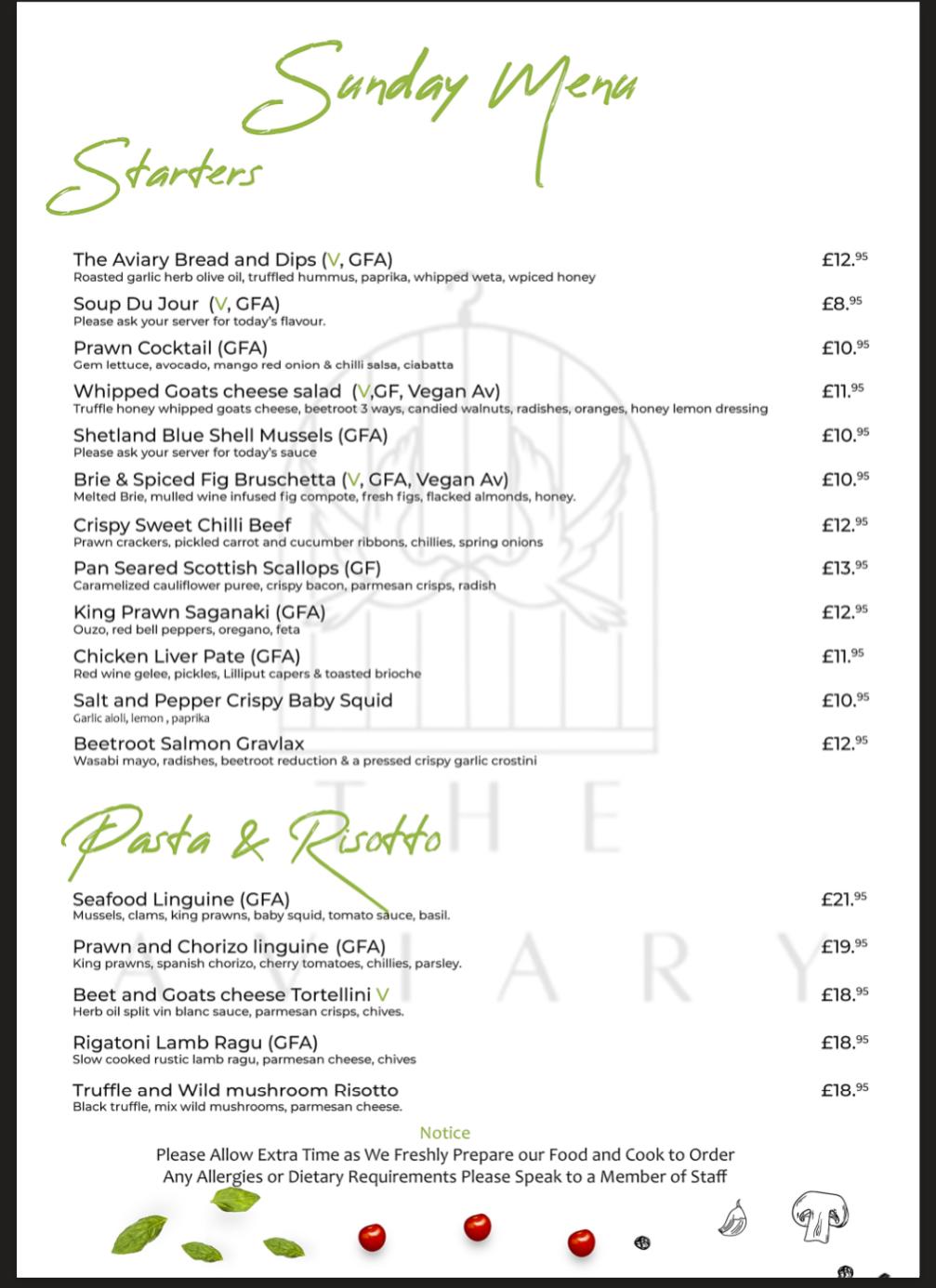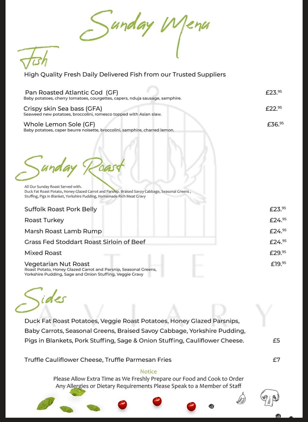 Sunday Menu